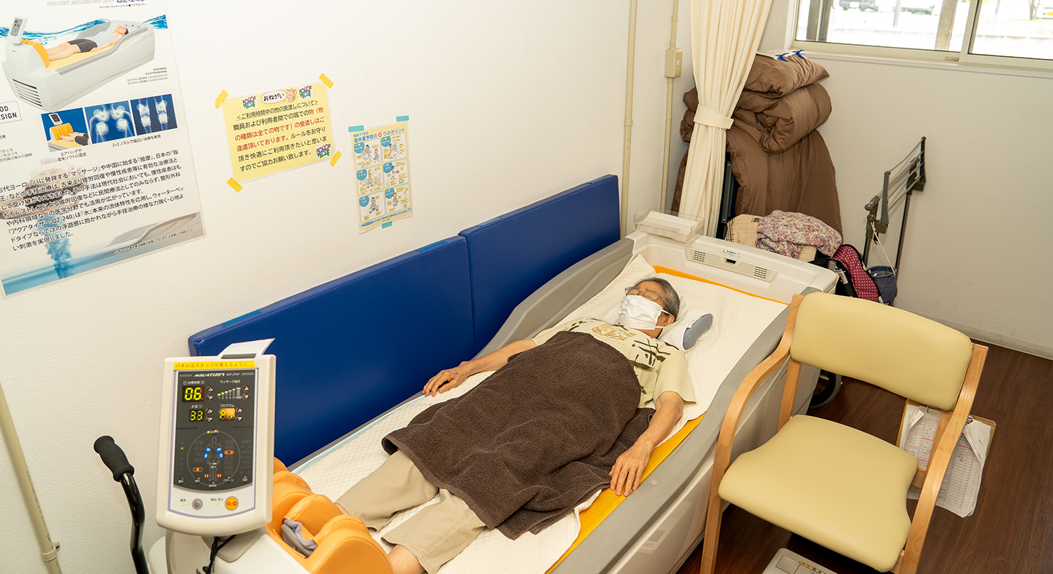 ホットパック・低周波・ウォーターベット等の最新の物理療法機器を使用し、効果的に痛みを緩和します。
