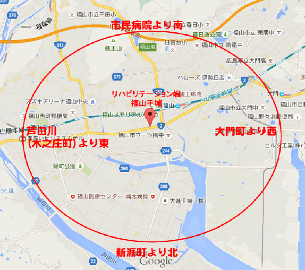 福山市近郊です。右マップをご参考下さい。